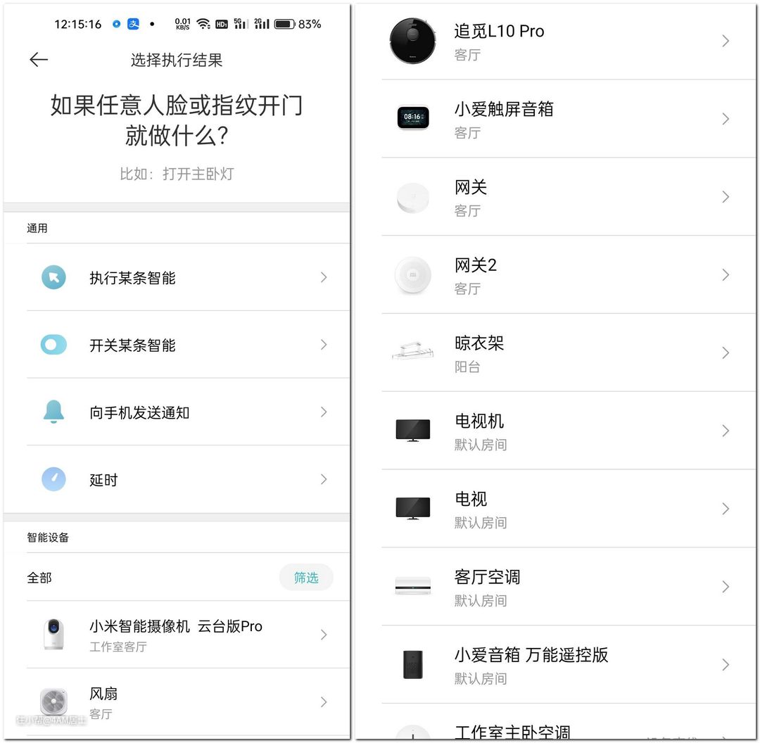 还直接能和家里米家/苹果HomeKit产品智能互联,比如下图任意一个动作一旦被触发。