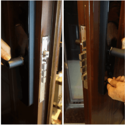 全自动推拉式顾名思义就是推拉式开门,“全自动锁芯”开锁与反锁都是电子控制,不需要再物理操作。识别到开关门时锁舌自动收回与弹出。