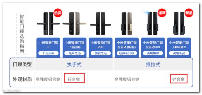米家现有门锁主要有下面几种不同: