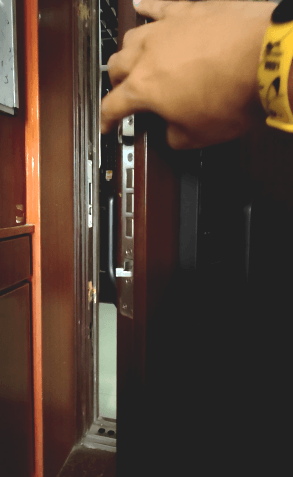 反锁需要在外出/进门关门后上提把手实现(因为执手式用的是“双快锁芯”,锁体中心必须物理旋转才能实现锁舌的操作)。