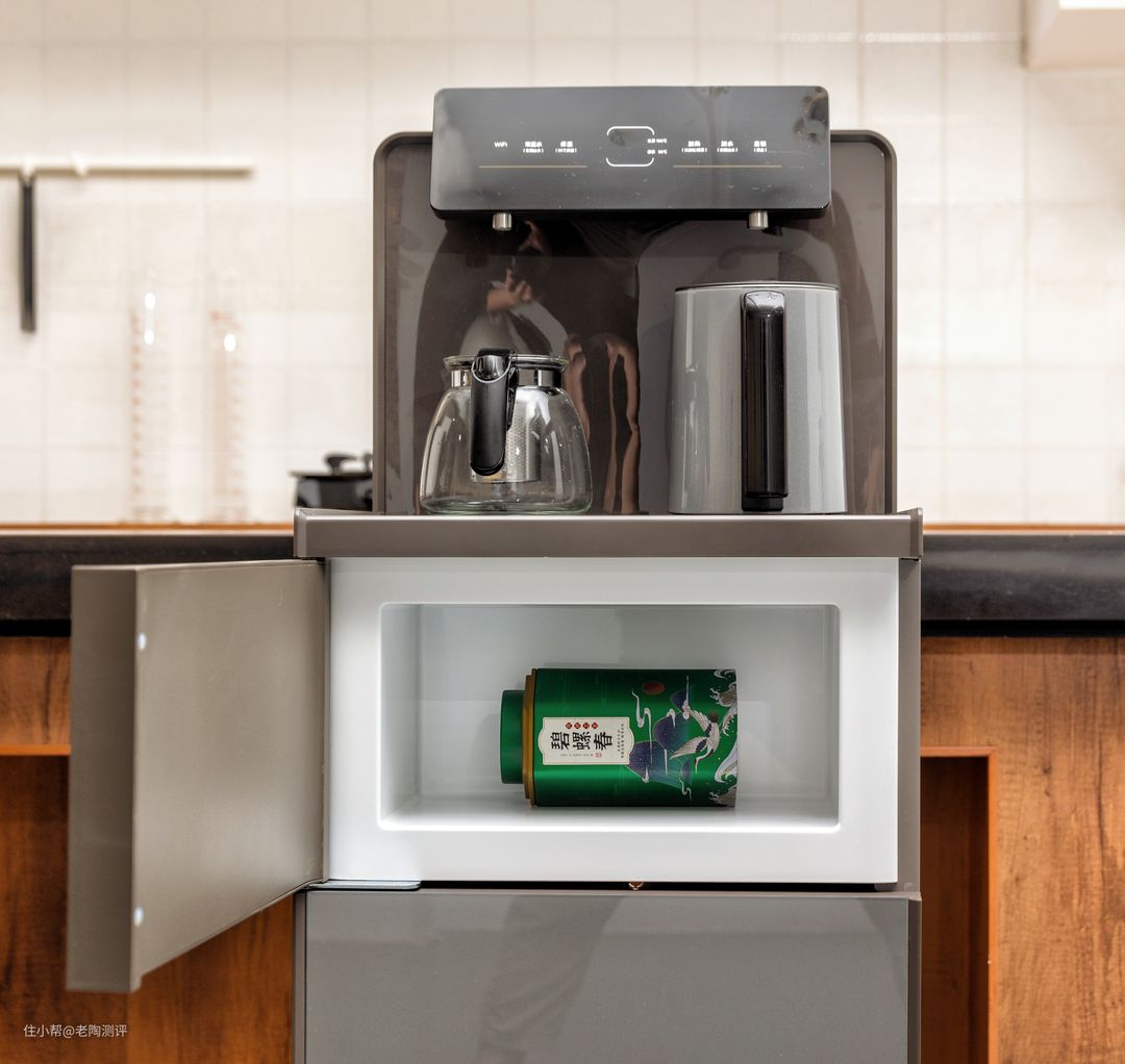 一开始我接触到茶吧机时,总觉得这玩意占这么大空间。直到我深入了解后,原来部分厂商也有考虑到这个问题,所以放水桶的上方会专门有一个收纳空间。