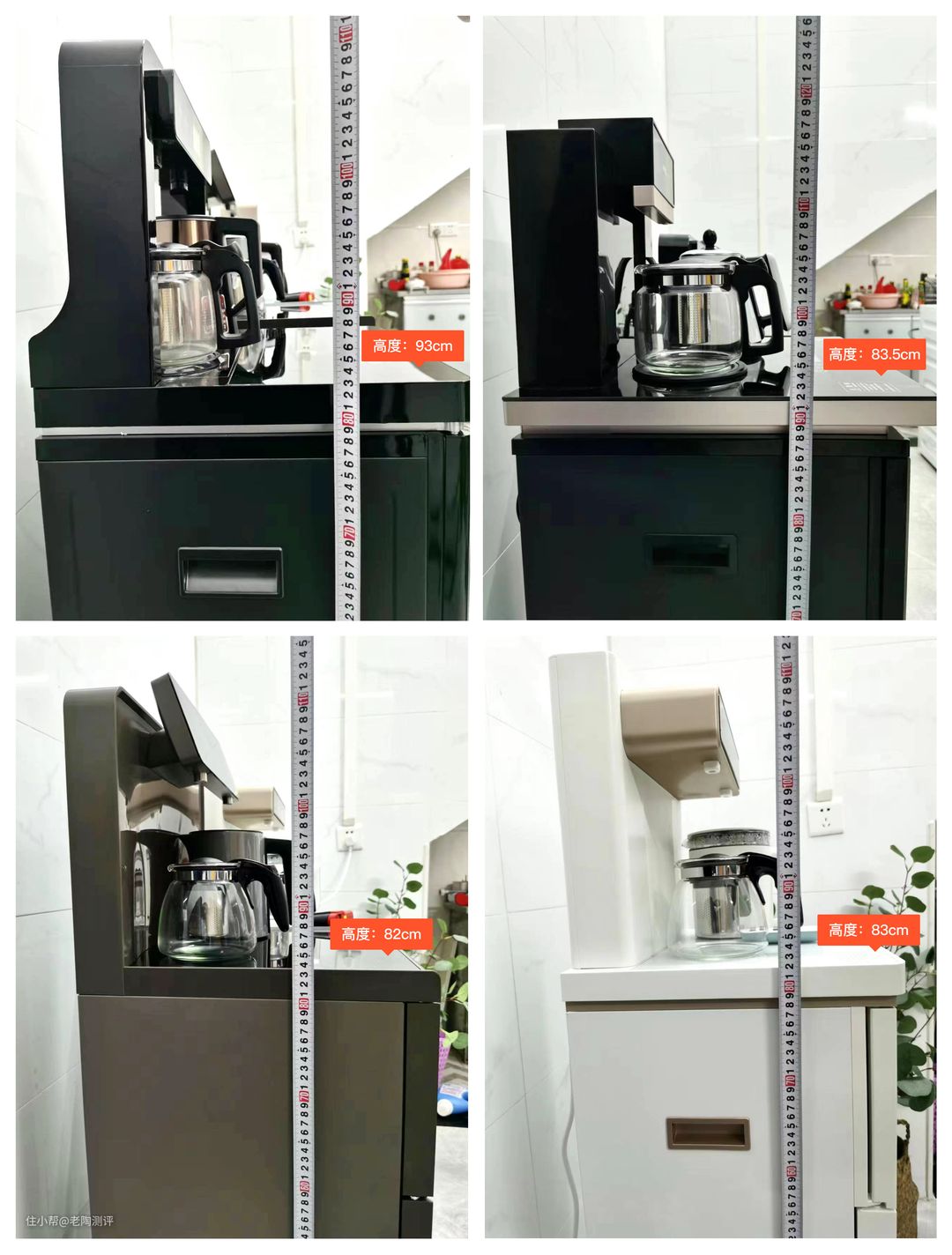 经测算,前二名是安xx、海x茶吧机,操作台高度分别达到了92cm、83.5cm,正常175cm的男性也无需弯腰取水。比起后面2款更高一点,但整体无大差异。