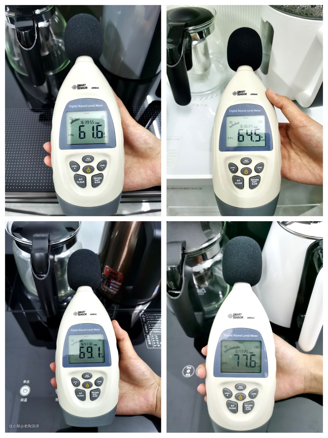 在加热期间,我们分别测试四款茶吧机的噪音:
