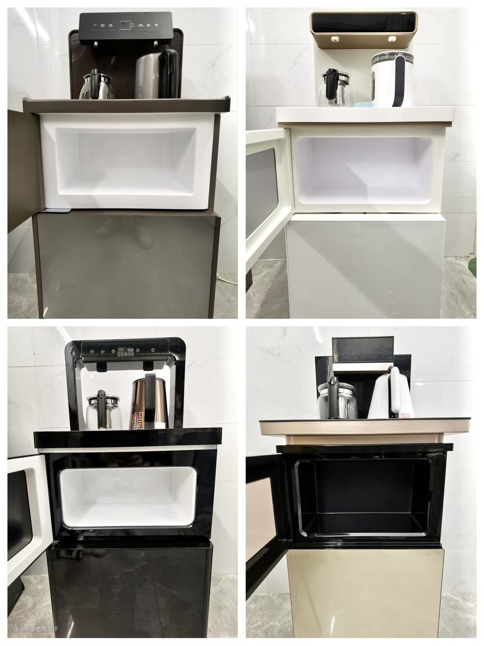 作为颜值党,第一眼很重要,尤其是这种长期摆放的小家电,这四款茶吧机皆为下置水桶式设计,整体看起来高挑和简约。
