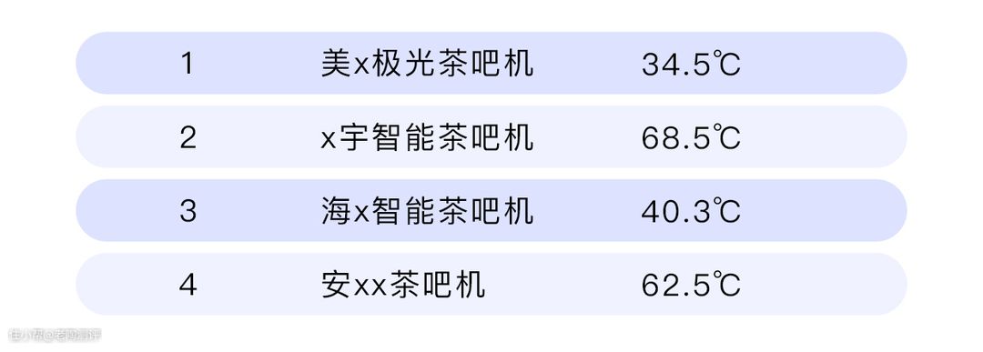 我们可以看到美x极光茶吧机,无论是在人性化设计、加热效率、温控能力、材质等方面都要远优于其他品牌。