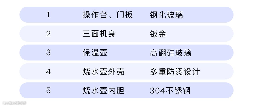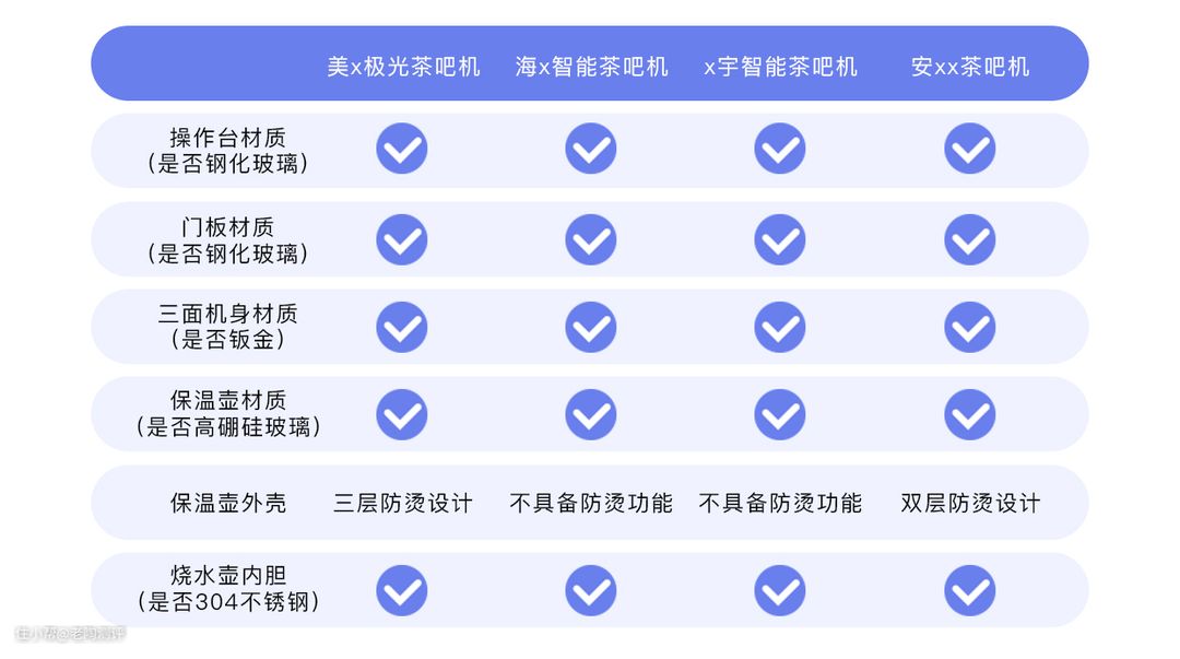 有些品牌在用户体验方面会做得更好,好比如烧水壶的外壳材料,像海x、x宇茶吧机都不具备防烫功能,只有美x、安xx用上了隔热材料。