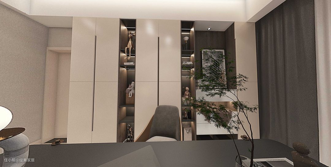 案例解析:本案为精装房,主要形式为局改和现代轻奢风格。主要用于天花板造型、墙面彩绘、墙布、墙面背景、衣柜软装饰等,以实用为主,充分利用空间。整体为现代简约风格,以灰色和白色为主,点缀着咖啡色,力求简约而不简约时尚。在大多数白领眼里,这是一种家庭类型。