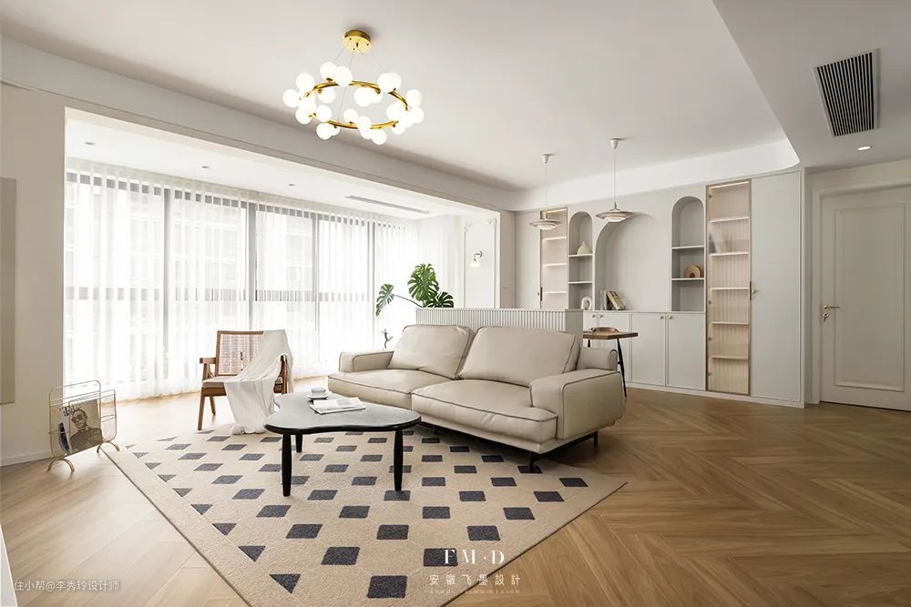 现代风和北欧风,两者包容性很强,可选择布艺或皮质、棉麻的沙发▽