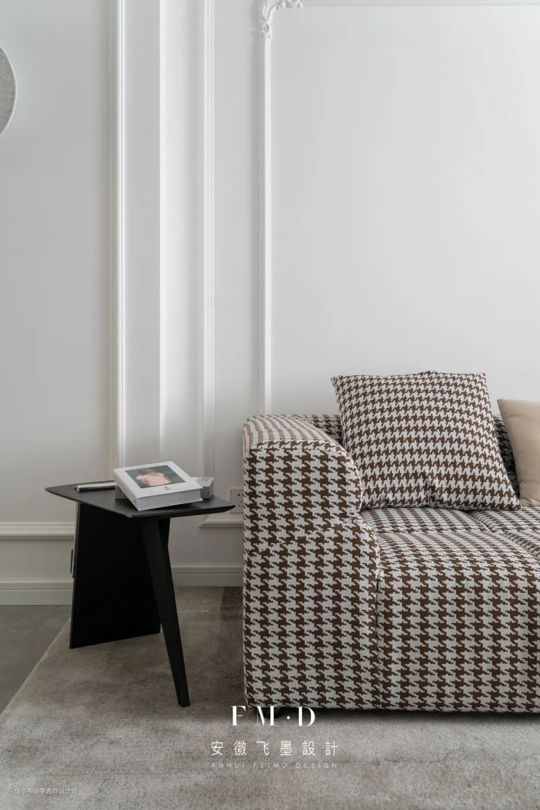 7、边几。沙发边,可摆放一个小边几,方便随手置物。建议选择线条简约的款式,更耐看百搭。
