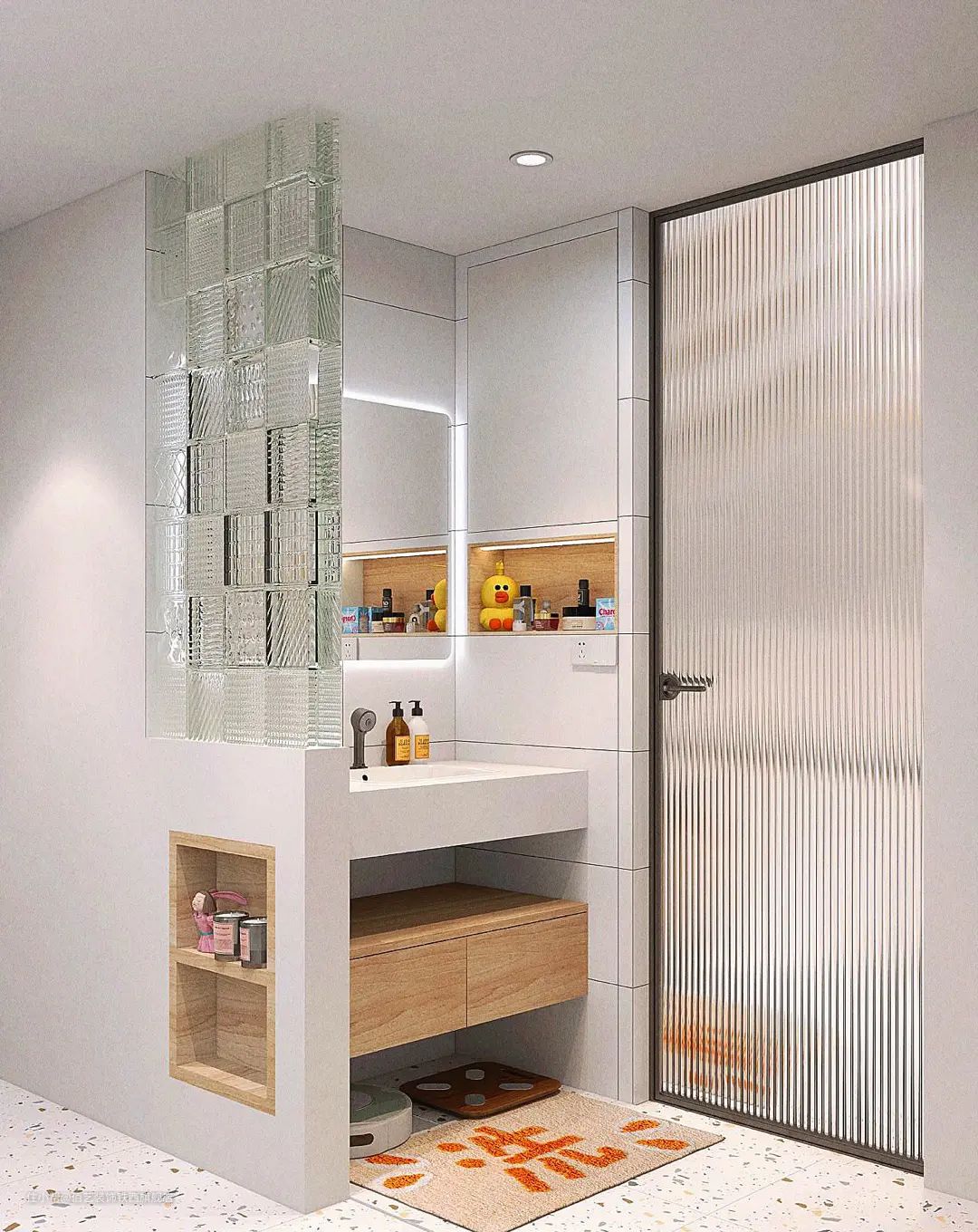 多款卫生间干湿分离的经典设计,小户型的朋友可以做这样的半墙式干湿分离卫生间,解决了多人使用卫生间的问题,好看实用装修的朋友参考,