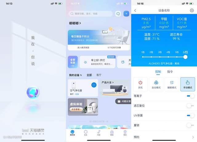 智能化方面,这台净化器是接入了天猫精灵的智能家居系统,可以直接使用天猫精灵APP控制净化器开关,对于在家不愿意动弹的我来说方便了许多,而且通过扫描机身的二维码连接到WIFI后,就可以通过APP对净化器进行远程的控制了。操作界面一目了然,可以显示各项空气指数,并且能直接预约定时开关。