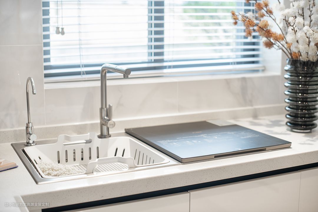 对于大多数厨房来说,地柜+吊柜绝对是扩展储物空间的最佳组合,橱柜内要根据个人使用习惯进行合理分区,搭配拉篮、收纳篮等工具将物品细分,将有限的空间利用到位。