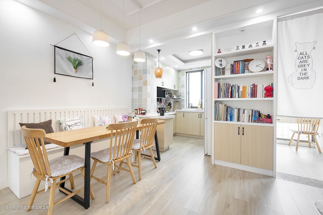 比起传统以功能为主的封闭式厨房,开放式布局可以消除空间的物理界限,打破了与外界的交流屏障,做饭不再是一个人的埋头苦干,共享的烹饪空间将一家人聚集在一起,每个成员都有机会参与其中,无障碍沟通交流由此开始。