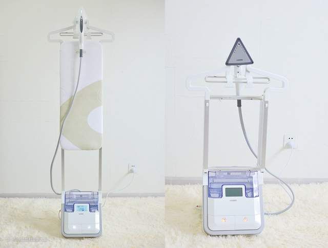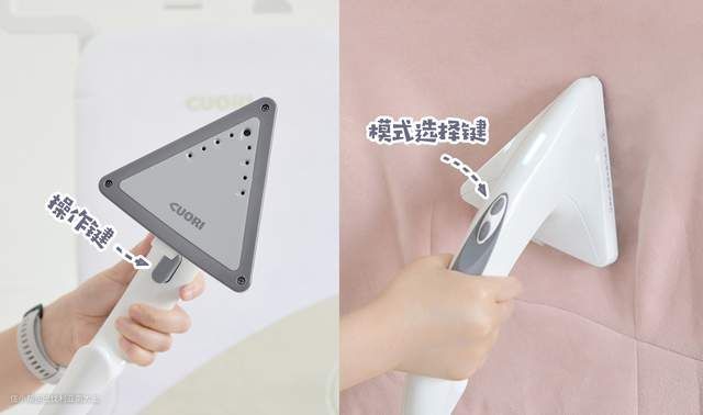 这个三角聚能烫头还有二次加热功能,可以将蒸汽再次进行汽化,形成高温高压干蒸汽,即熨即干,对上班族来说就很省时间。而且所有的操作按键也都集中在手柄上,整个熨烫过程是不用弯腰的。