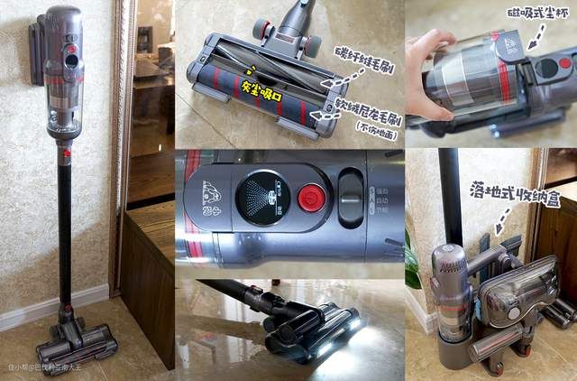配备的刷头及配件也非常丰富,有双滚电动地刷、旋转擦地刷、电动除螨刷、二合一宽嘴刷、照明长扁吸以及软羽刷,适用于整屋清洁,对比洗地机和扫地机器人更有优势。