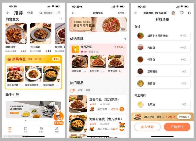 操作极其简单省心,在APP里有净菜一键购买功能,想吃啥直接下单,配菜佐料都给精准配比好了,顺丰直送到家。