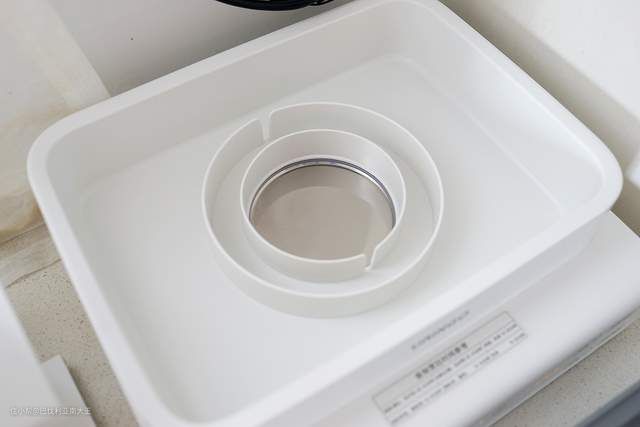 水箱上面这层灰色的就是接汁盘,蒸煮过程中食物留的汁水和蒸汽水都汇集在这里,用完取出随手倒掉就可以。这样水箱里干净的水和接汁盘蒸后的水是分开流动的,更卫生,拿起清洁也方便。