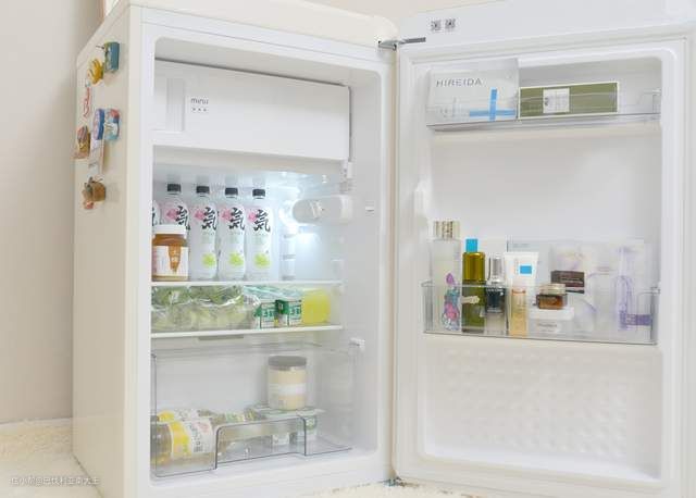 冰箱门可130度开合,取放物品都比较方便,我平时主要用它储存雪糕、护肤品以及爱喝的饮品、新鲜水果。