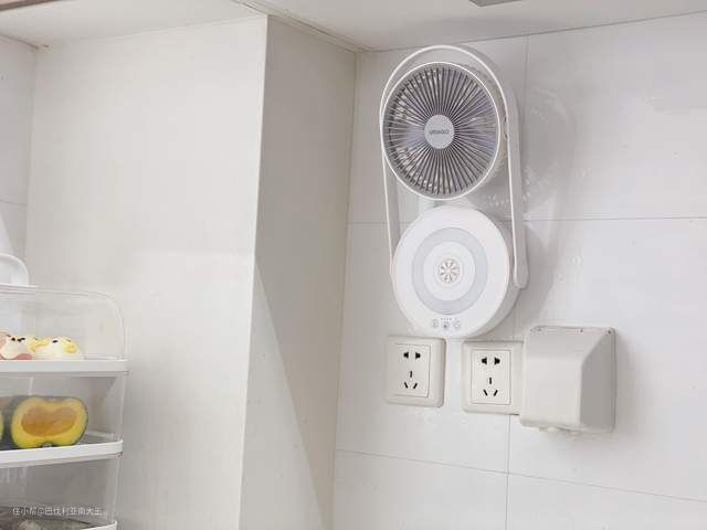 随机有赠送两个隐藏挂钩,我在厨房和卫生间各贴了一个,挂到风扇背面预留好的凹槽处即可,非常稳固。
