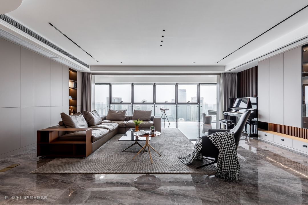 不靠墙的沙发,可以非常自然的划分空间,能够打造更加舒适丰富的功能区域。横厅户型可以划分成客厅和餐厅、客厅和书房,打造交互性更强的空间。非横厅户型也可以做不靠墙设计,划分休闲区域或者储物区,空间利用更合理。
