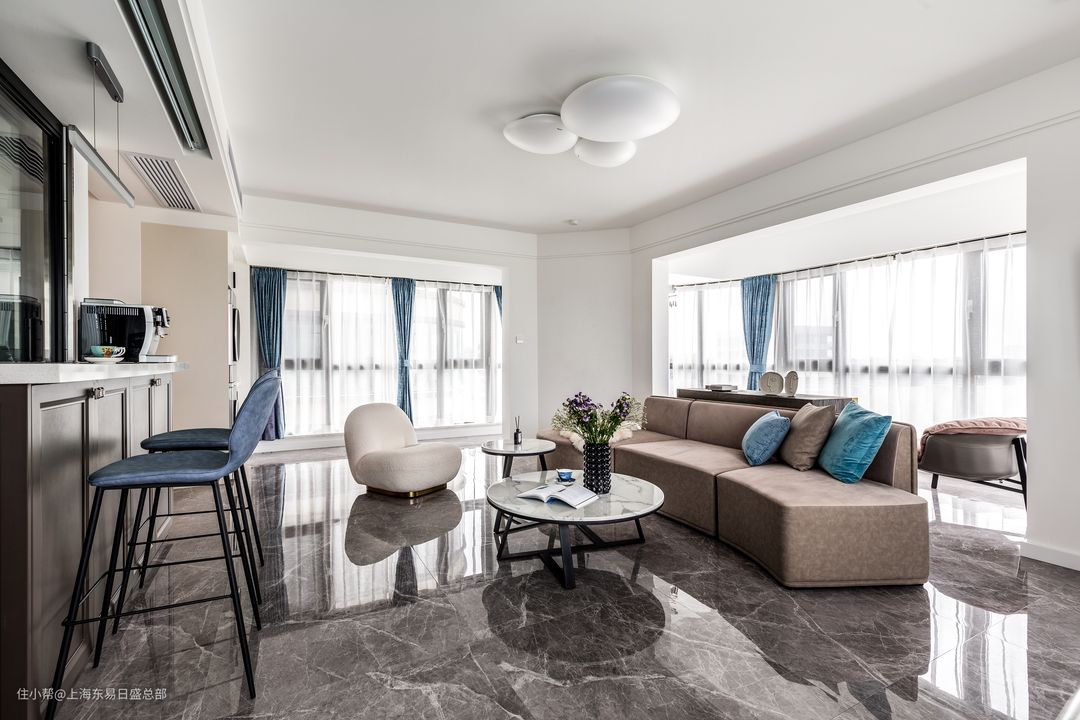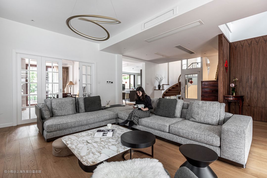 沙发做不靠墙处理,通常是以沙发来划分功能区域,会让空间变得通透开阔。开放式的设计也会让空间显得更加大气,完全释放空间格局。