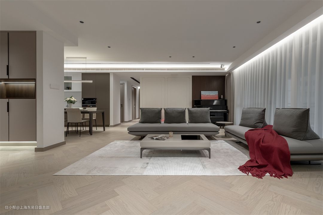 客餐厅做一体化设计是比较常见布局方式,可以保证整个家动静分区,同时也满足最舒适的家居动线,空间感更加通透舒适。两个空间互相连通,也非常有利于一家人情感升温。
