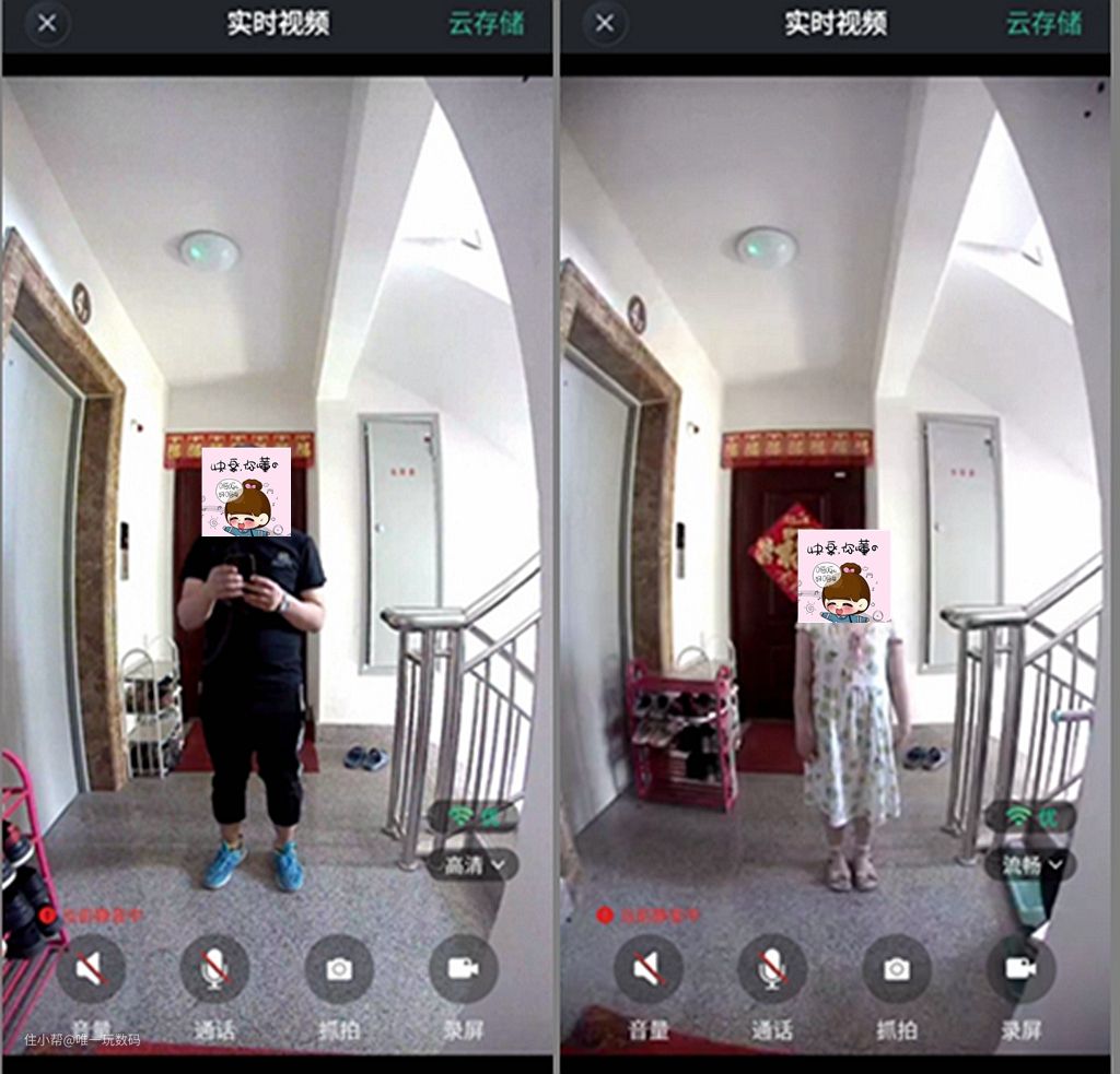 搭载了高清双目摄像头和深度学习人脸识别算法,很快就能完成验证,识别准确率高达99.99%,即使是化妆、戴眼镜也能够快速识别的。而红外补光灯的好处是,不管是逆光、强光还是在漆黑的深夜,对于门外的一切也能清晰地识别。