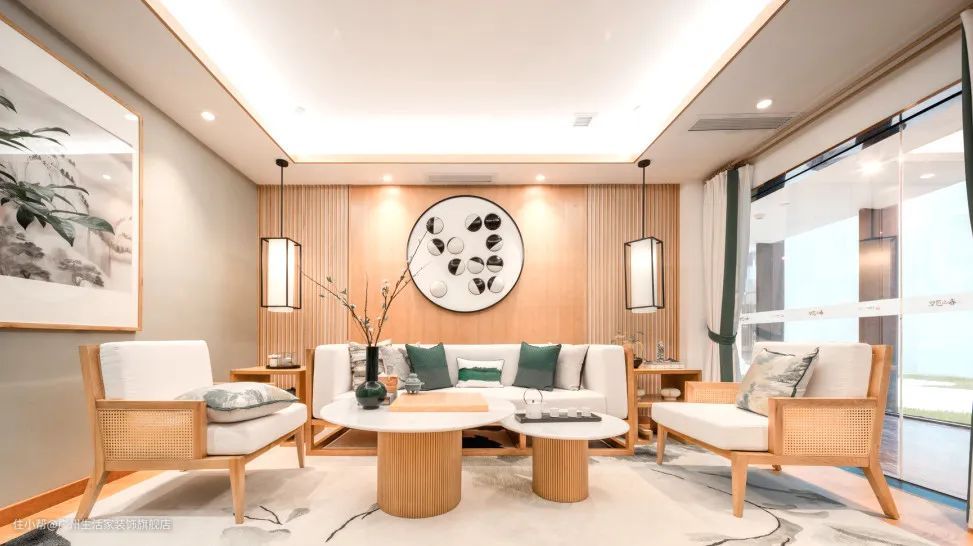 『吊灯』相较于吸顶灯的实用性,吊灯更具有美观性,但前提是客厅层高足够,再搭配与客厅风格协调的吊灯,可以让空间更加温馨优雅。