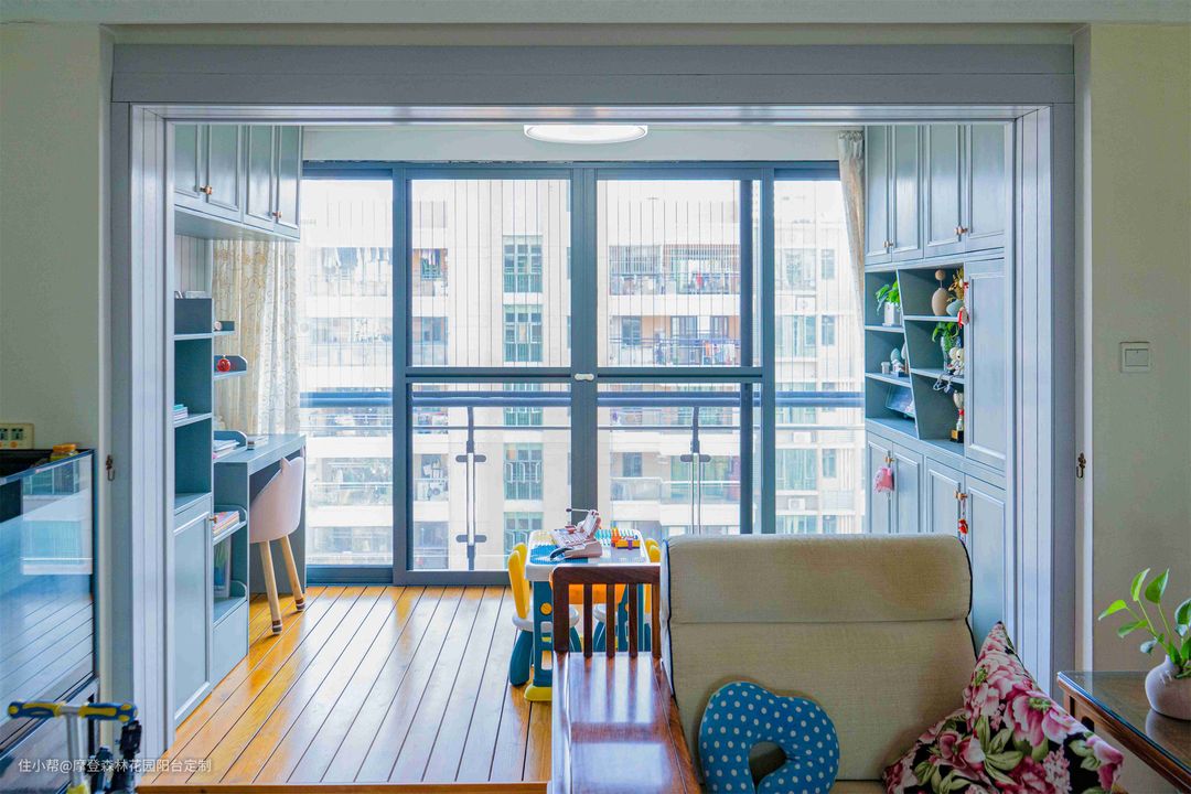 阳台封窗改书房,又多了个儿童活动区