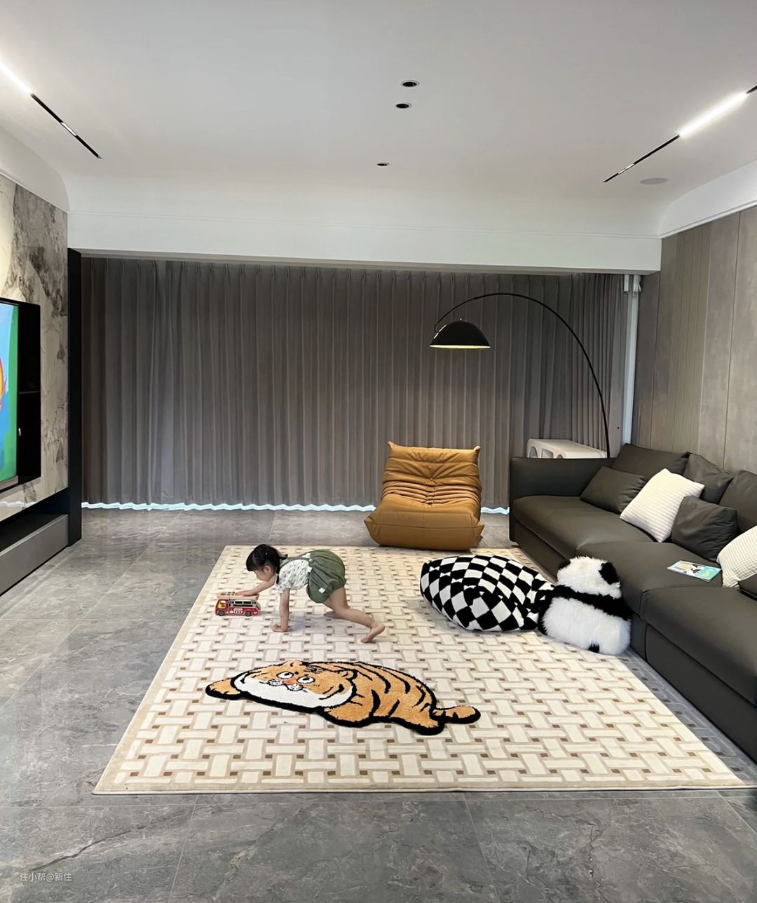 而且它更适合大空间,优美的曲线让空间灵动,也能填充软装中部空间的空白,点缀客厅。