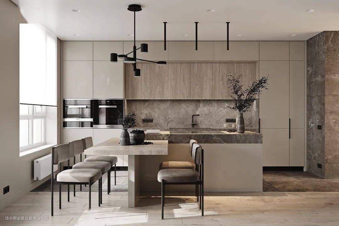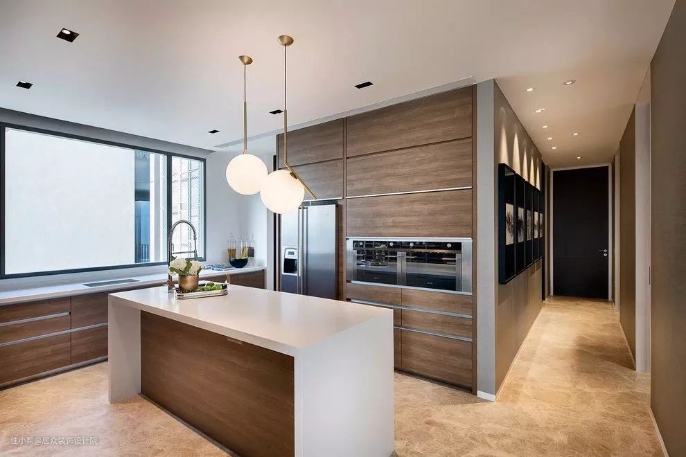 虽然现在很多人都推崇中岛台设计,但我们还是需要理性选择。不是所有的家庭都适合安装中岛台,比如不能接受开放式厨房的小户型家庭,中岛台安置在厨房里需要充足的空间,安置在厨房与餐厅之间,需要燃气公司允许开放式厨房,并且家庭成员能接受油烟问题,安置在封闭式厨房与餐厅之间,就一定会占据餐厅空间。不合适自家使用习惯的,不必跟风啦。中岛台也不是一张简单的桌子,需要提前规划好水电路的走向布局,再加上中岛台内部做的定制收纳柜,这就是一笔不小的装修预算。