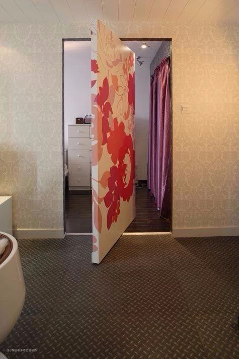旋转式的隐形门:在门中间用一根主轴固定,它的隐藏效果比较好,尤其是和垂直线条感强的墙面,可以完美隐藏,但是它的实际使用宽度较窄,适合卫生间书房使用。