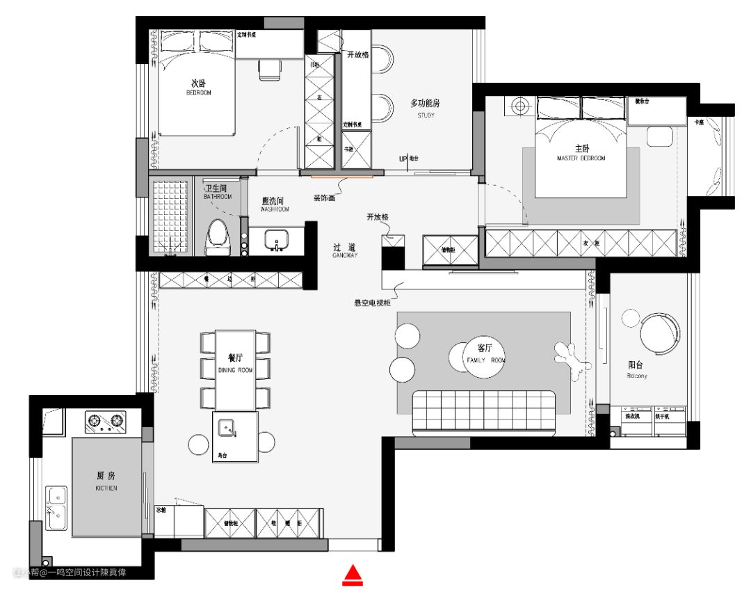 ①比如说我们可以舍弃固有的老套的对空间的称呼,比如说客厅,餐厅等。转而使用休闲区,会客区等名词作为分割空间的名词来使用。