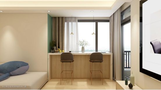 高高的吧台承载的是生活的小趣味和情调,也是最接近这个城市风景的地方,一家人可以惬意享受着下午舒适的阳光。