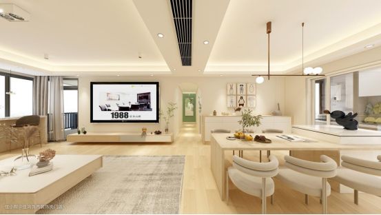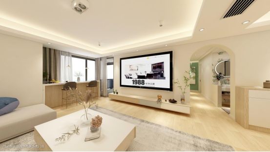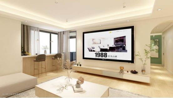 140寸的大面积显示屏,搭配长条电视柜,带来自然舒适的观影体验。