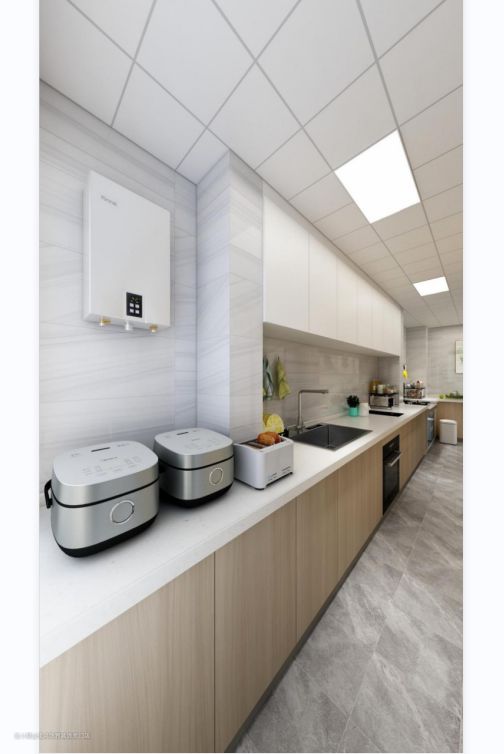 西厨的设置满足了不同生活场景的需要,面包机、智能电饭煲等电器更是为自然风的厨房增添了一点的现代感。