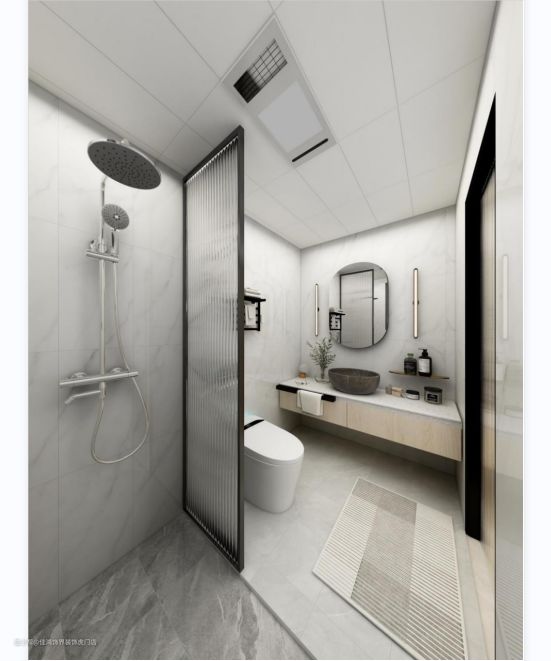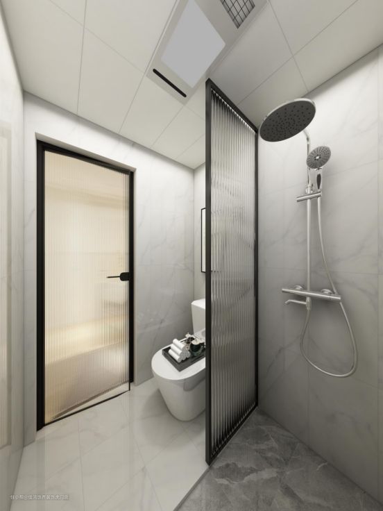 长虹玻璃门的隔断,透光不透人。淋浴区采用哑光大理石地砖,贴心防滑。