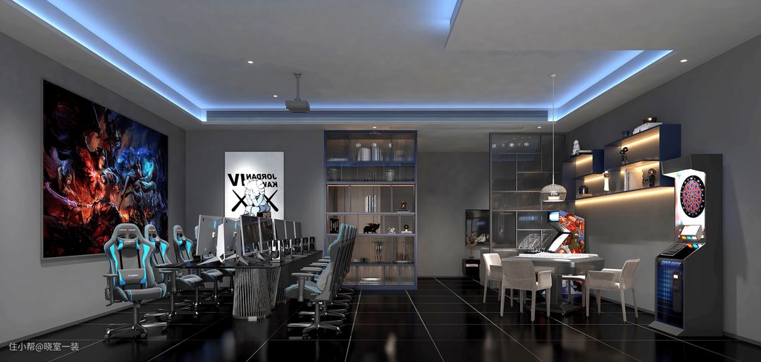 传统上的电竞主题风格与当代传统式室内装修风格契合极高,因此各种主题风格都可以Hold的住