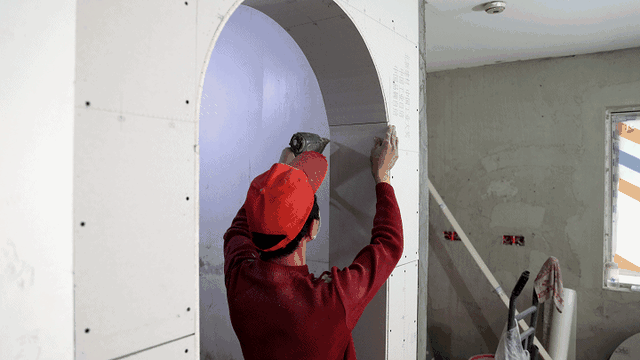 2.切割石膏板、制作木龙骨时,与墙面衔接的地方最好都有一个豁口最过度,这样安装时稍加批腻子,就能让弧度更顺畅,也降低施工难度。