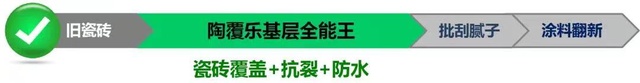 陶覆乐基层全能王具有良好的封闭性,安全检测认证,防霉抗碱附着力佳这三大优势。同时陶覆乐基层全能王适用于各种基面、防水、找平、翻新、修补于一体,轻松解决多种墙面问题。功能增加的同时,工期反而缩短。