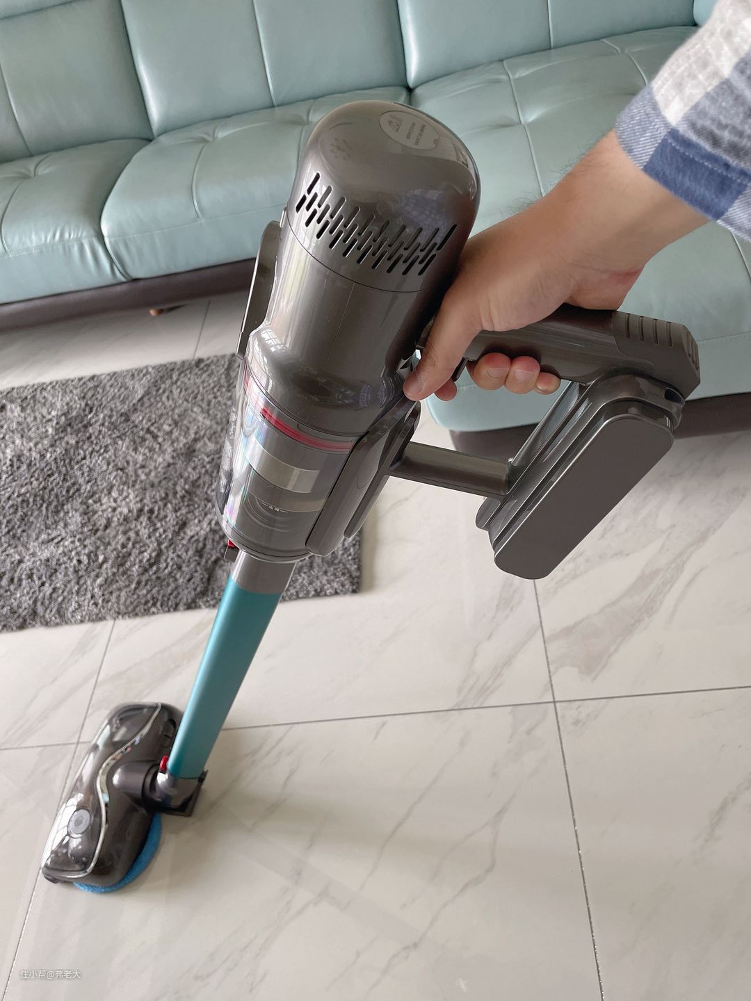 传统的吸尘器只能靠纯吸力清洁,无法进行擦地。正因如此,这与大家心目中“吸尘+擦(拖)地=完整地面清洁”的习惯性思维并不相符。加之我国的家庭中,地面材质以地板、瓷砖的硬质地面为主,地毯占比很小,所以,往往用吸尘器吸地之后,还要拿着拖把再拖一遍,这可真是费时又费力。小狗的旋转擦地刷则将吸拖一体的美好理想付诸于现实,一次动作,便可将吸地、擦地同步完成,一机多能、效率极高。
