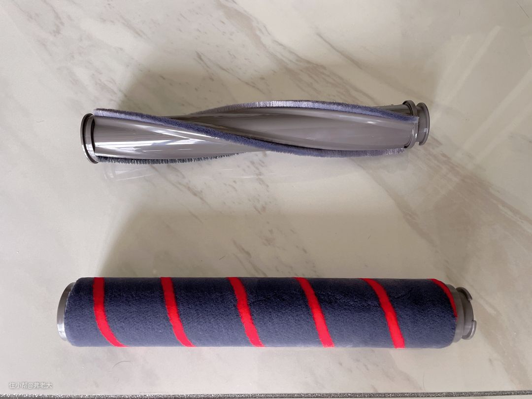 双滚电动地刷——私以为,这是最能胜任不同地面条件清洁的刷头,前方的高密度软绒尼龙滚刷与后方的碳纤维滚刷强强联手。
