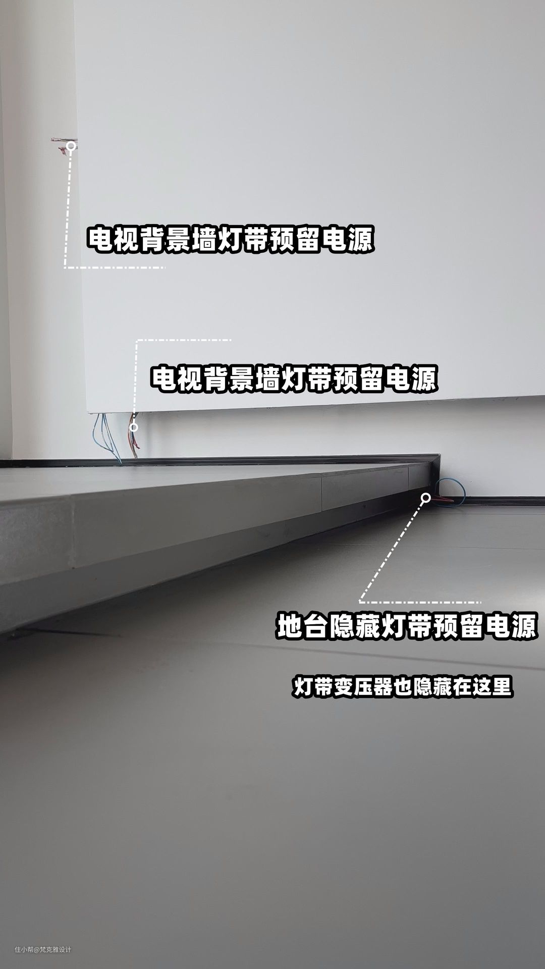 A 灯带沿着内侧下挂固定,最右侧前期预留电源线,一定要记住隐藏好灯带变压器并要方便更换