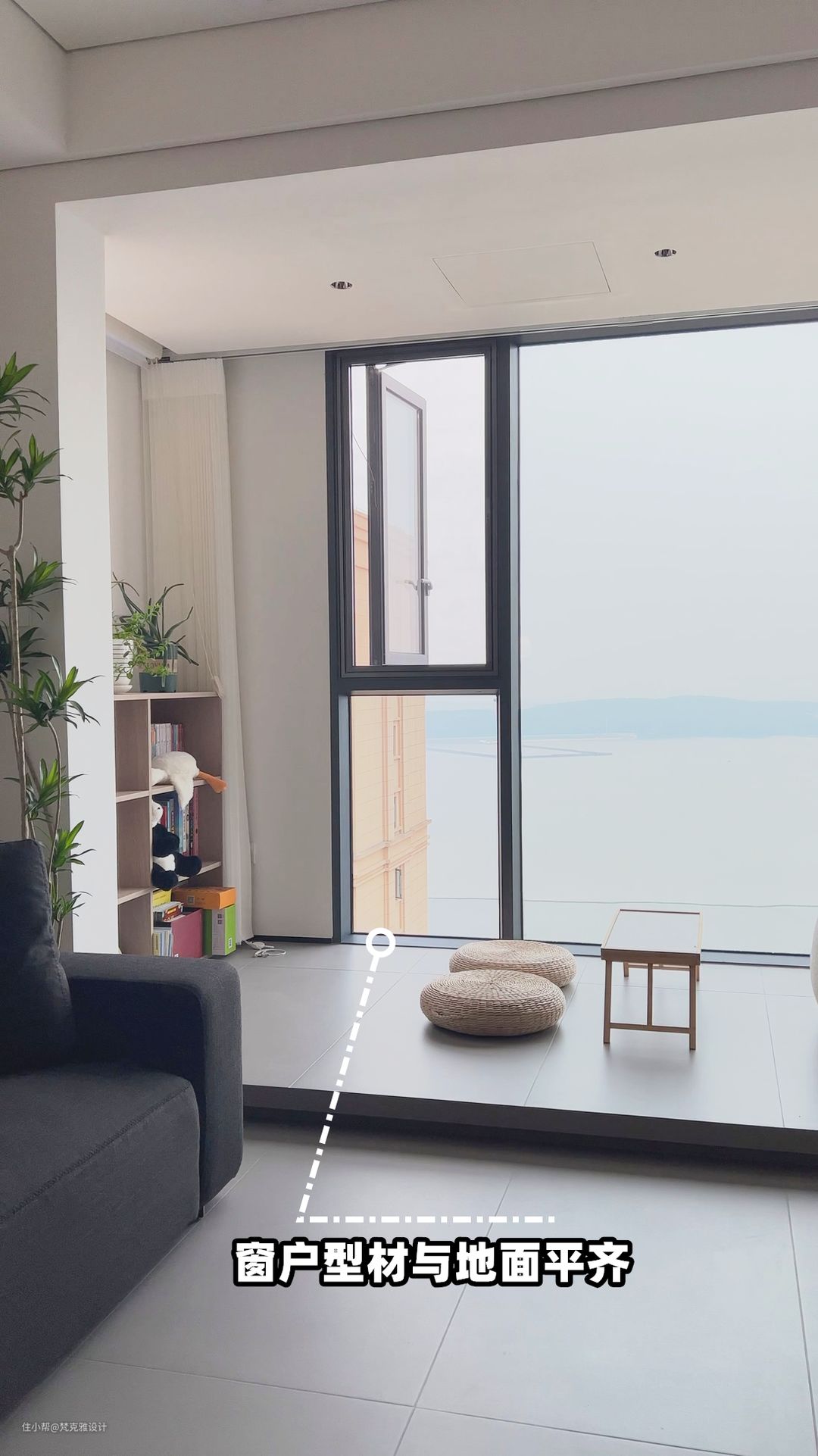 本案:落地窗型材高度要与地面平齐,更简洁。