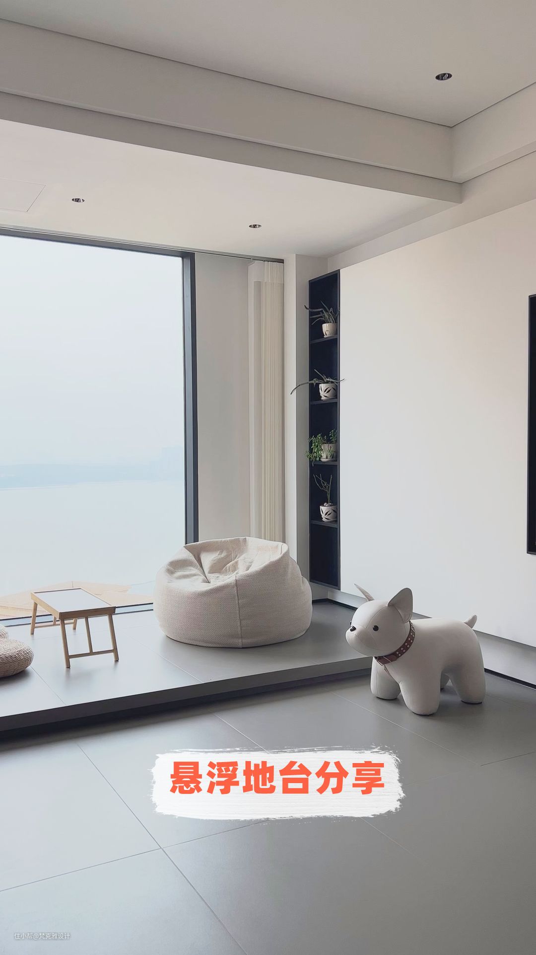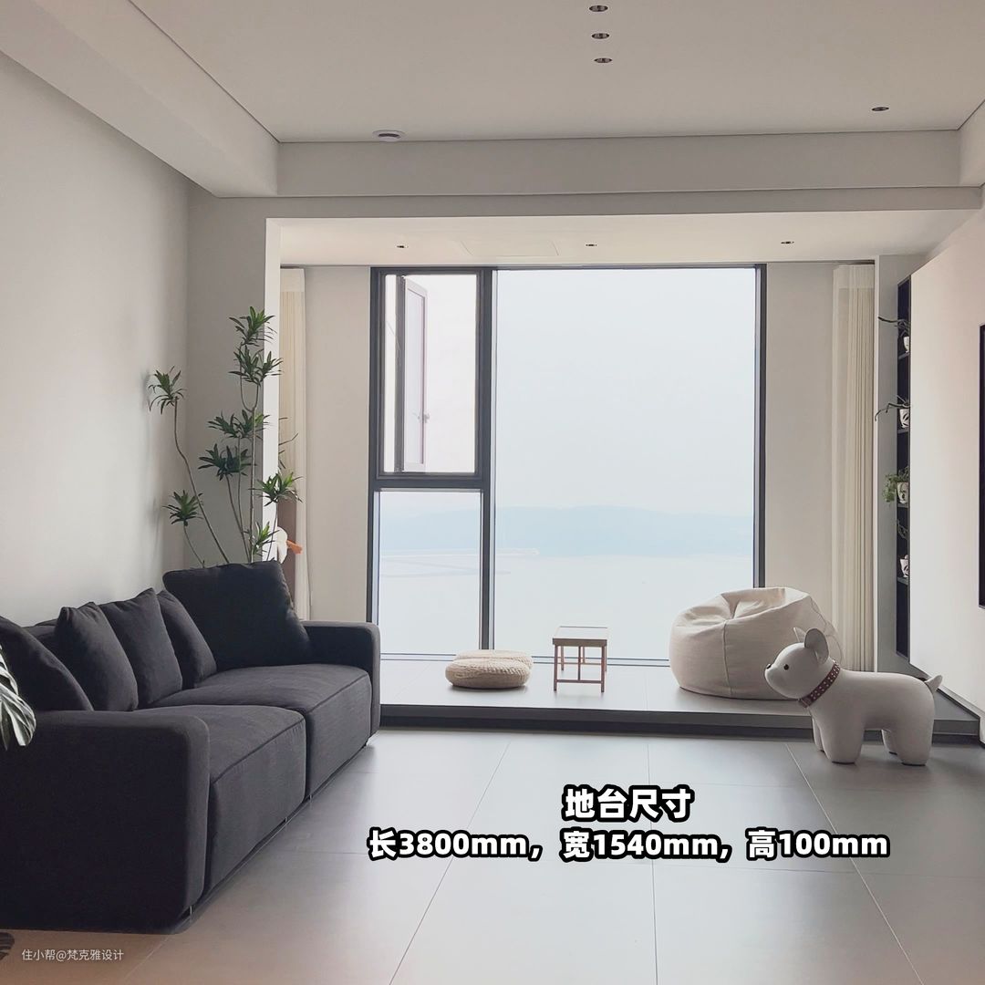 Tips:客厅悬浮地台高度不可过高,客厅需要弱化地台的高度,适合做轻薄款地台,尽量保证阳台与客厅的整体性!