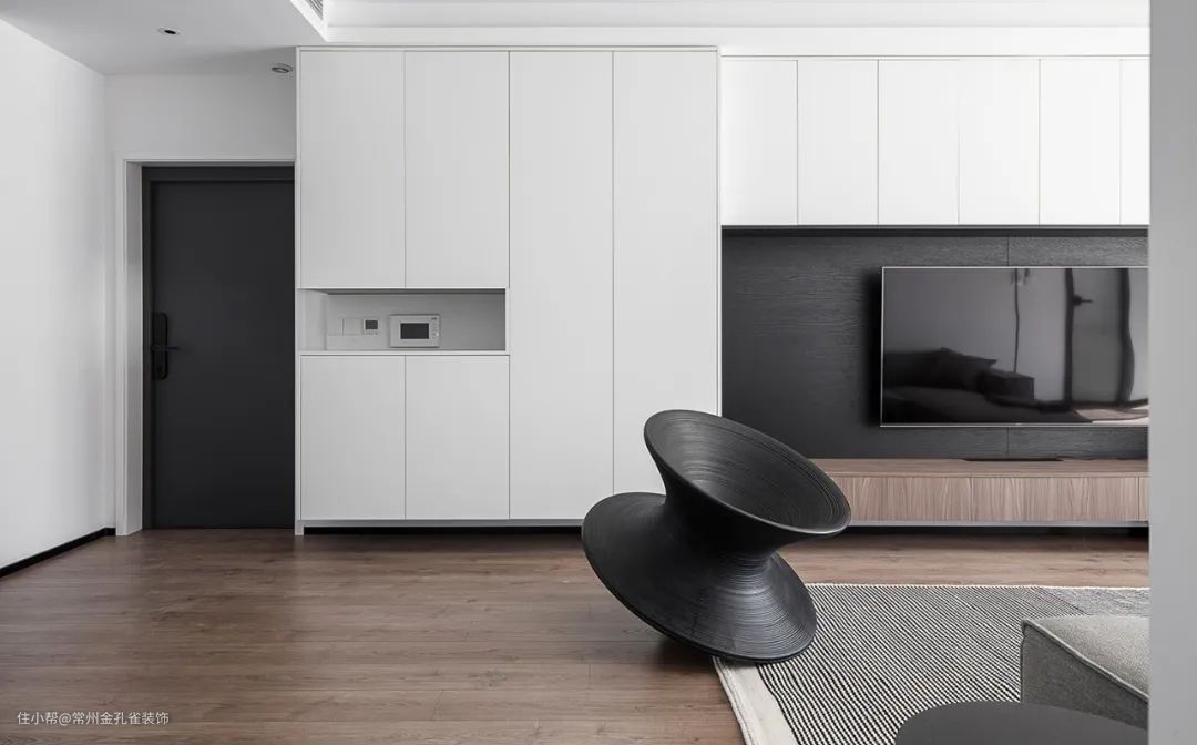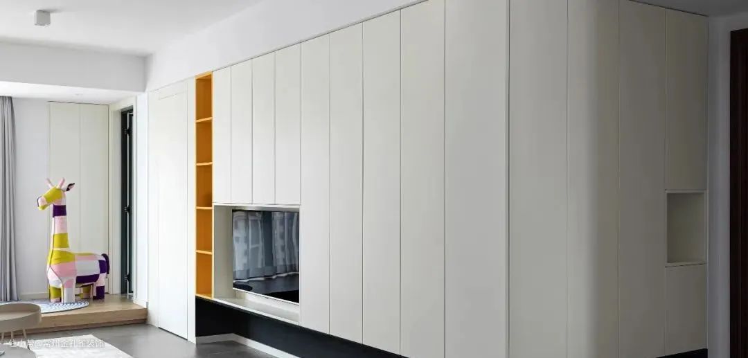 一柜到底的做法在现代家居空间中并不少见,整个空间看上去会更加简洁规整。