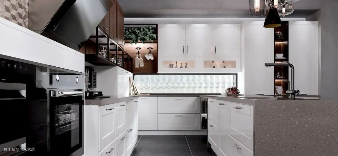 如果想让家更显恢弘大气,可以设计玻璃高柜彰显轻奢通透的格调,嵌入式厨电并排设计,让收纳更整洁。
