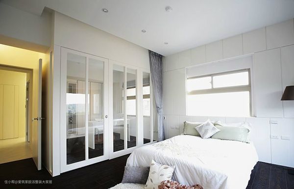 怎样设计主卧与书房隔断﹖非玻璃门隔断莫属了,用玻璃门划分出一个十分独立的几平米小书房,书房里有一张白色的书桌、书柜及白色背景墙,缔造明浪的格调,与主卧一样干净清澈。