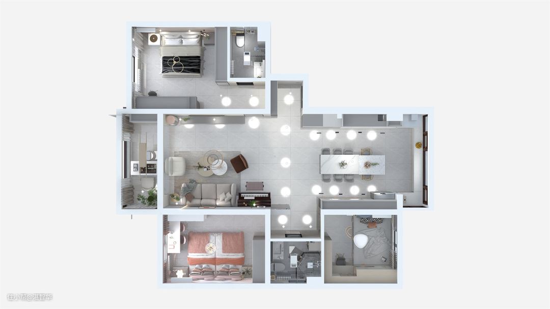 户主一家六口,小孩三人两个女儿和一个即将出生的儿子以及一位老人。需求是收纳柜要多,衣物比较多。