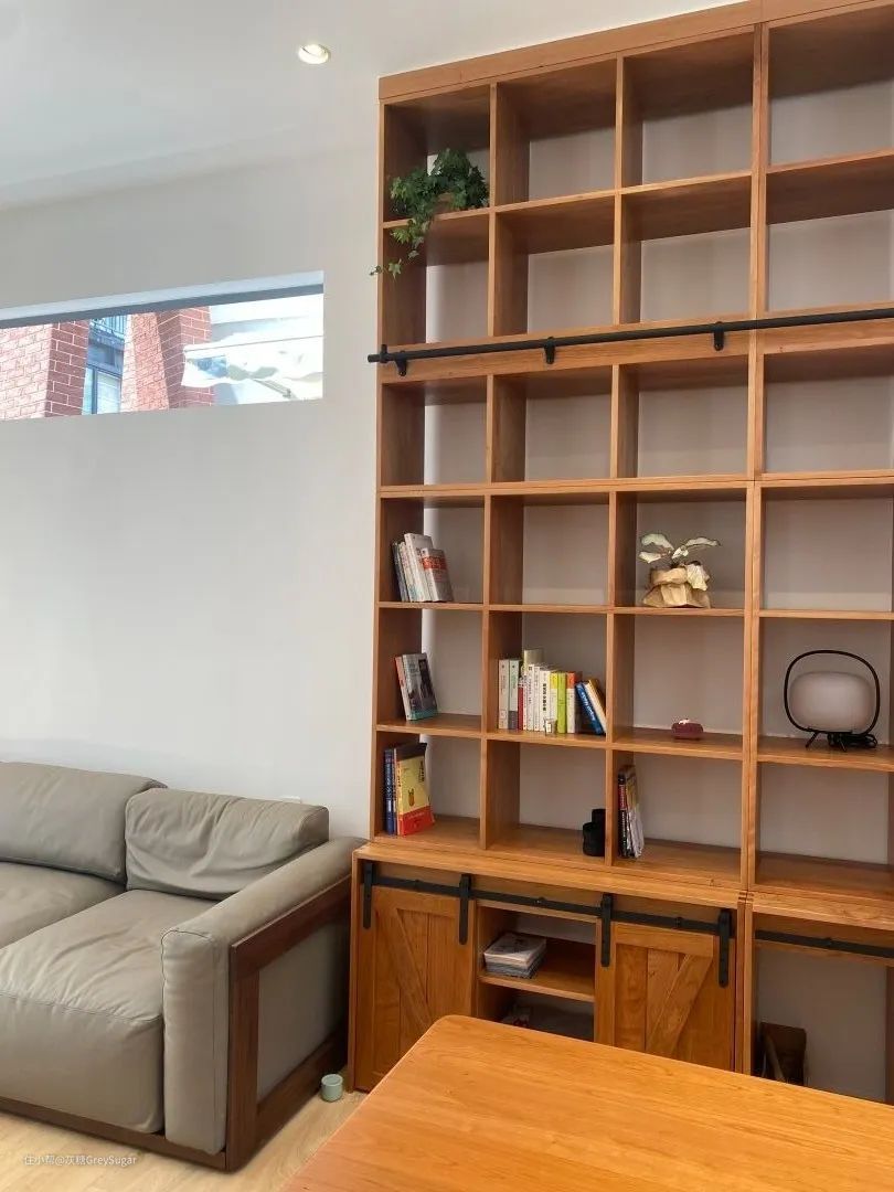 又或者,家里电视如果利用率比较低的话,那可以考虑一整面都作为书墙使用。